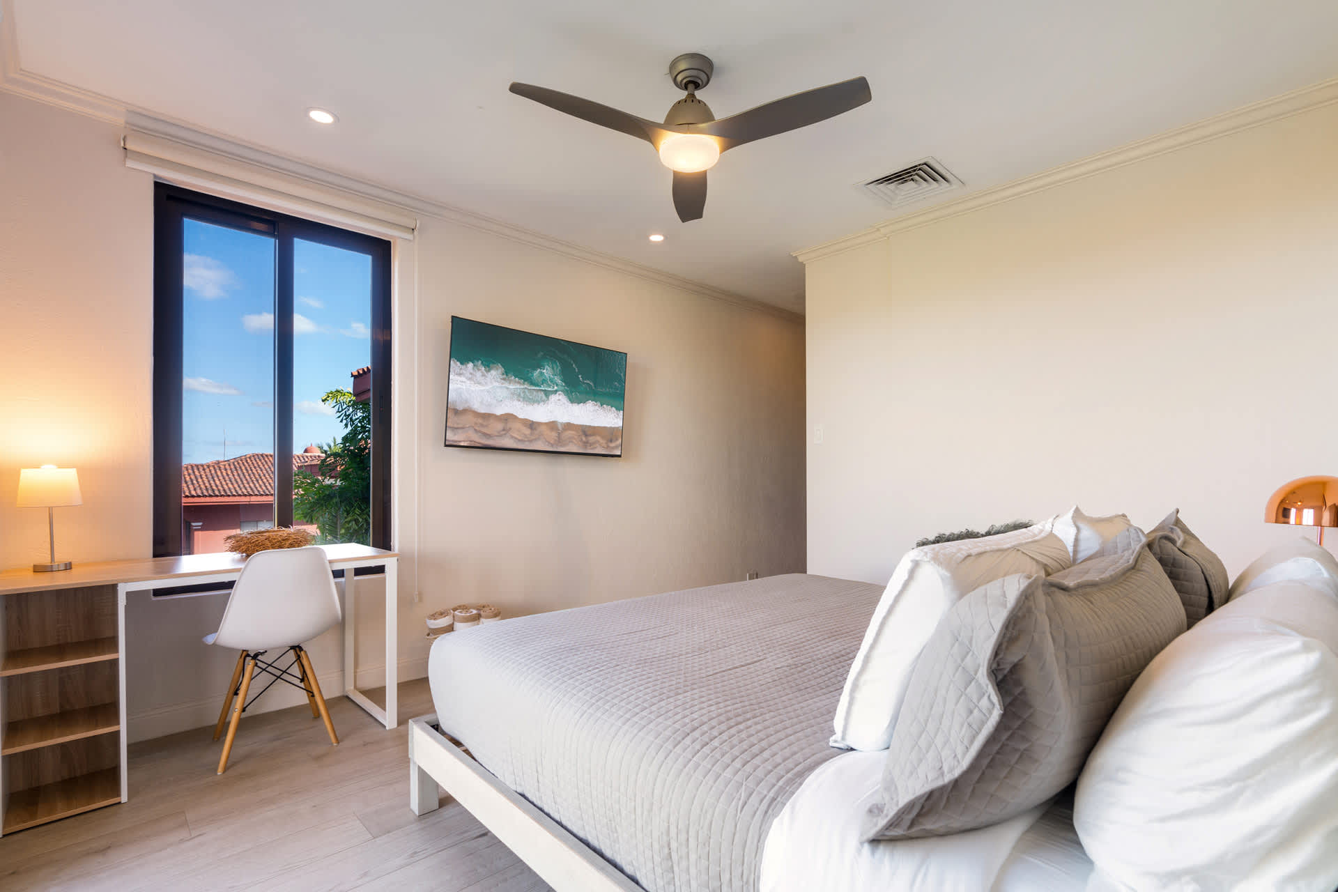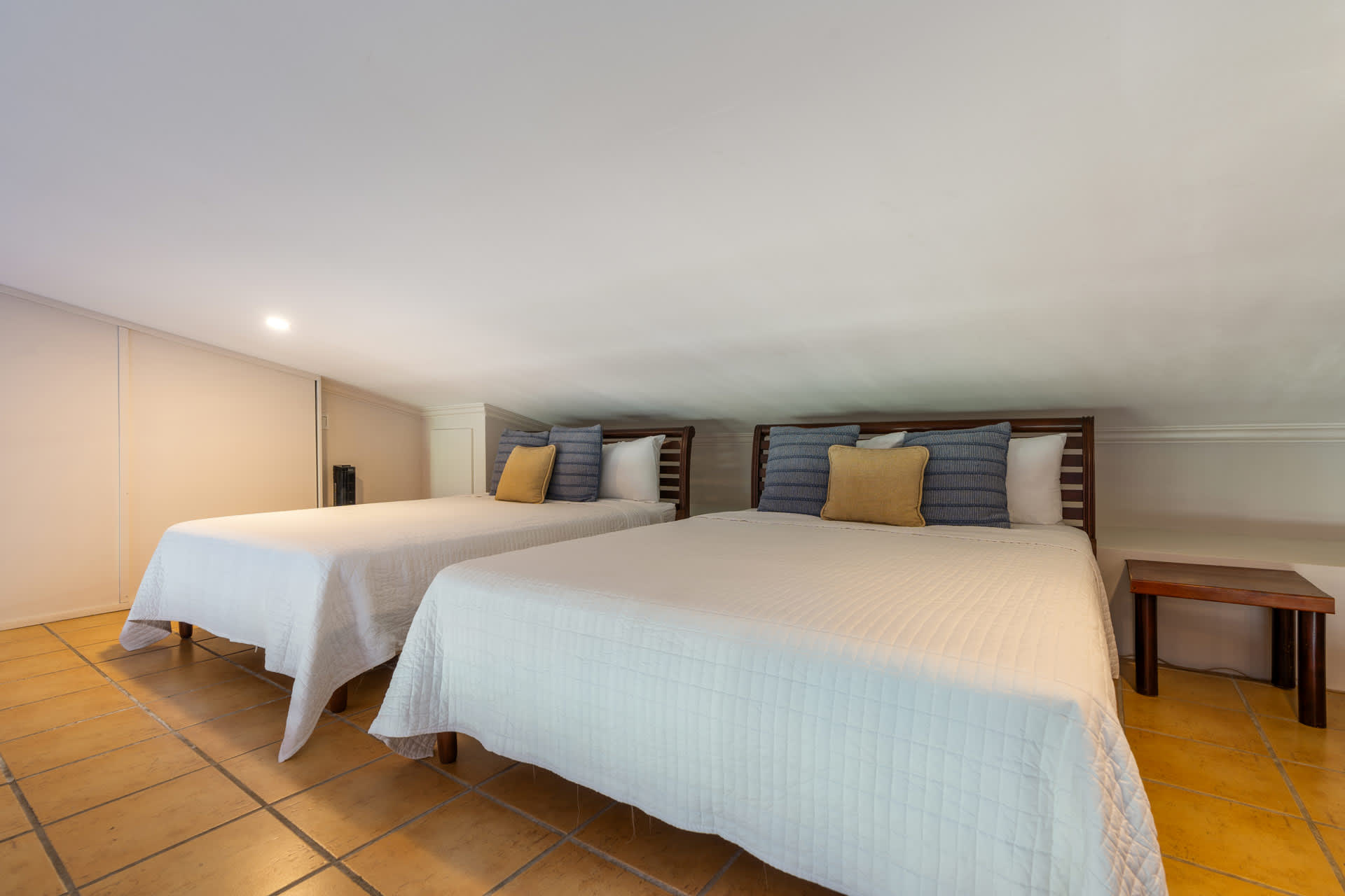 Casa de Françoise can sleep a total of nine guests between the condo’s three beautiful bedrooms and the loft’s two queen beds. The primary bedroom features a king bed, the second bedroom includes a queen bed, and the third bedroom has a twin bed. The unit also includes three luxury bathrooms, an in-unit washer and dryer, air conditioning, and high-speed internet access.