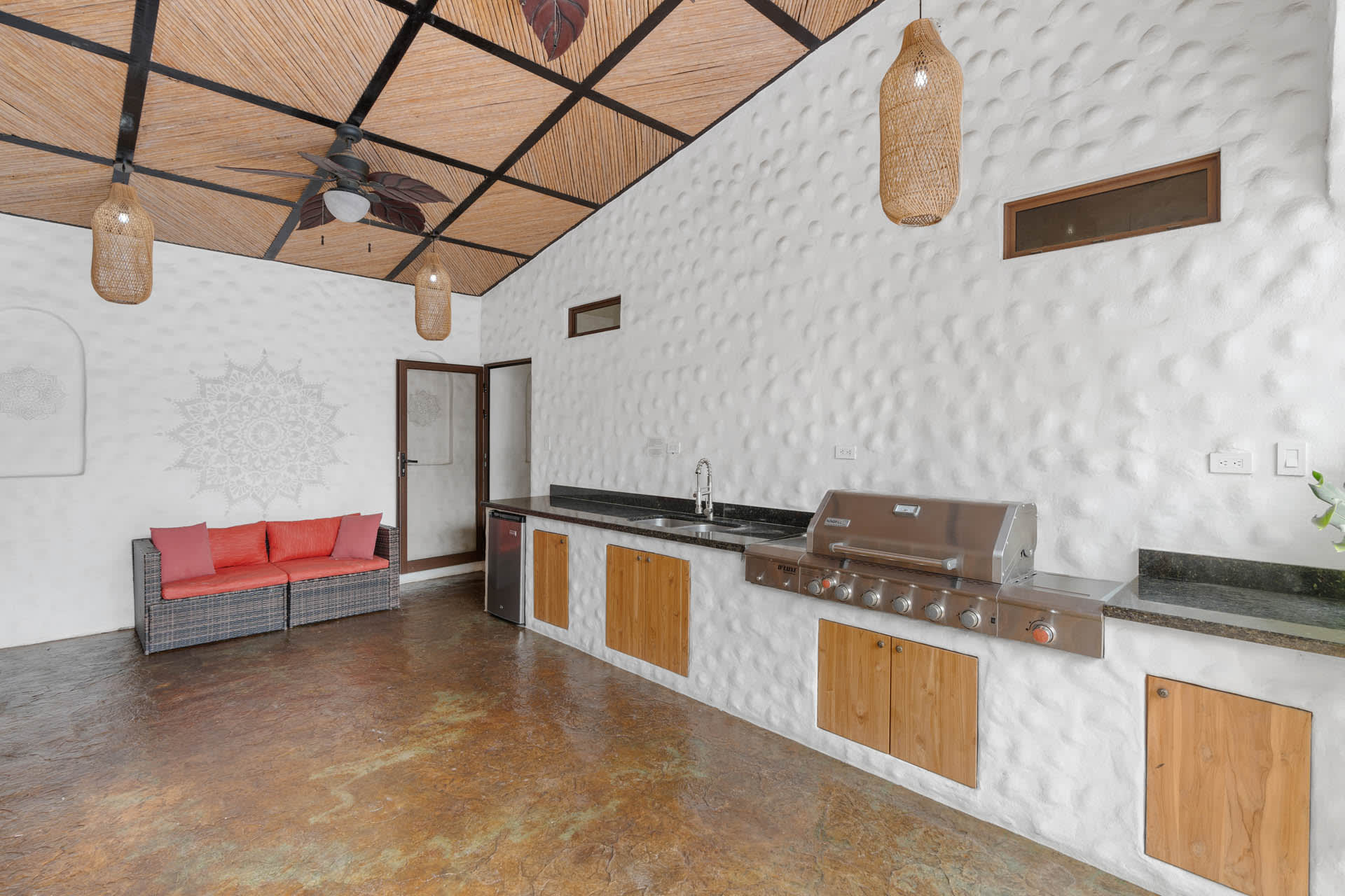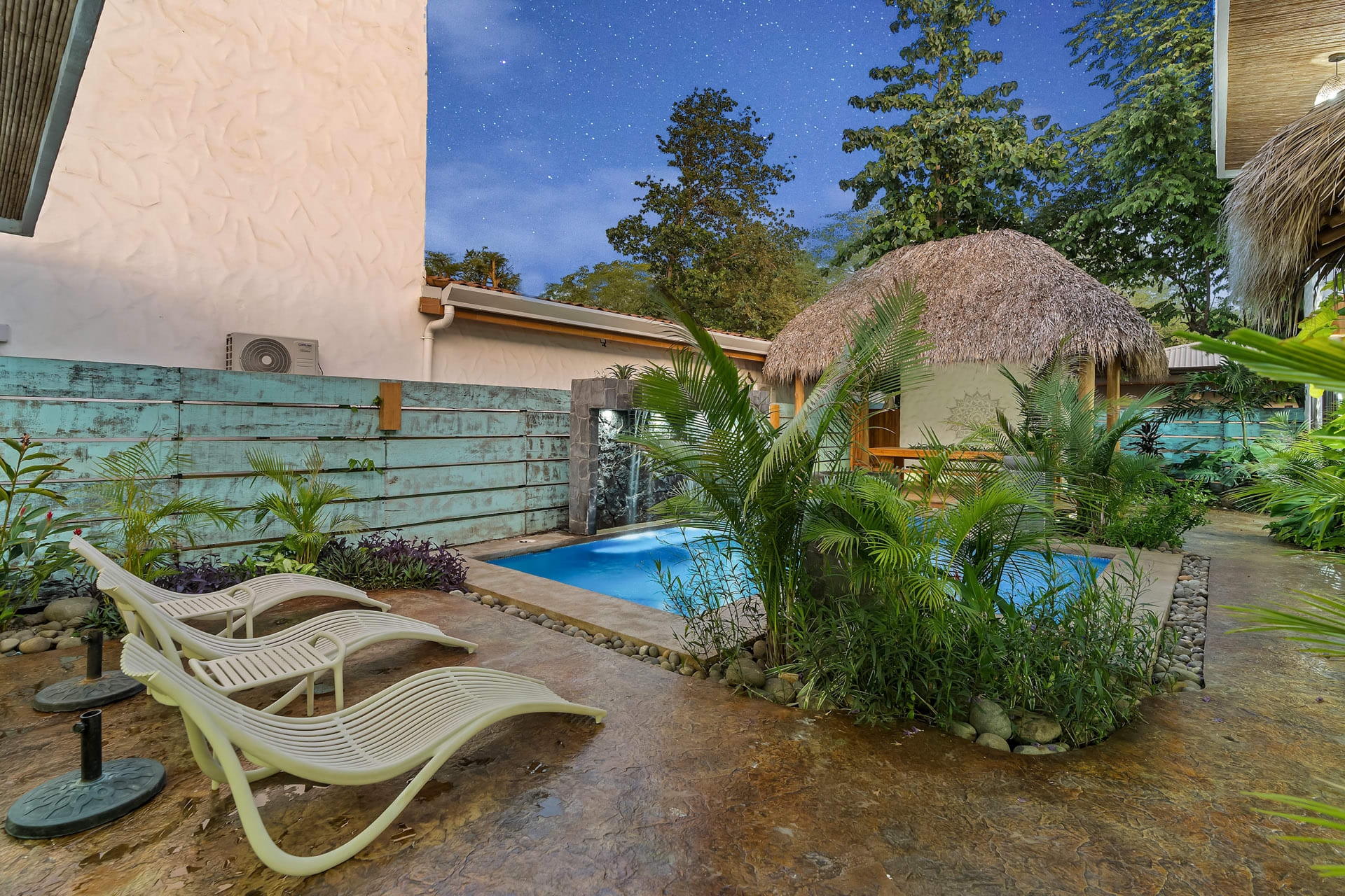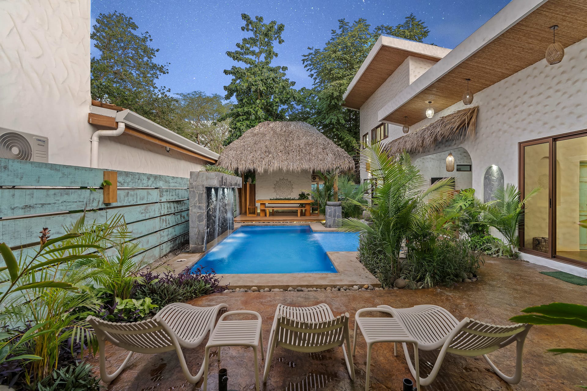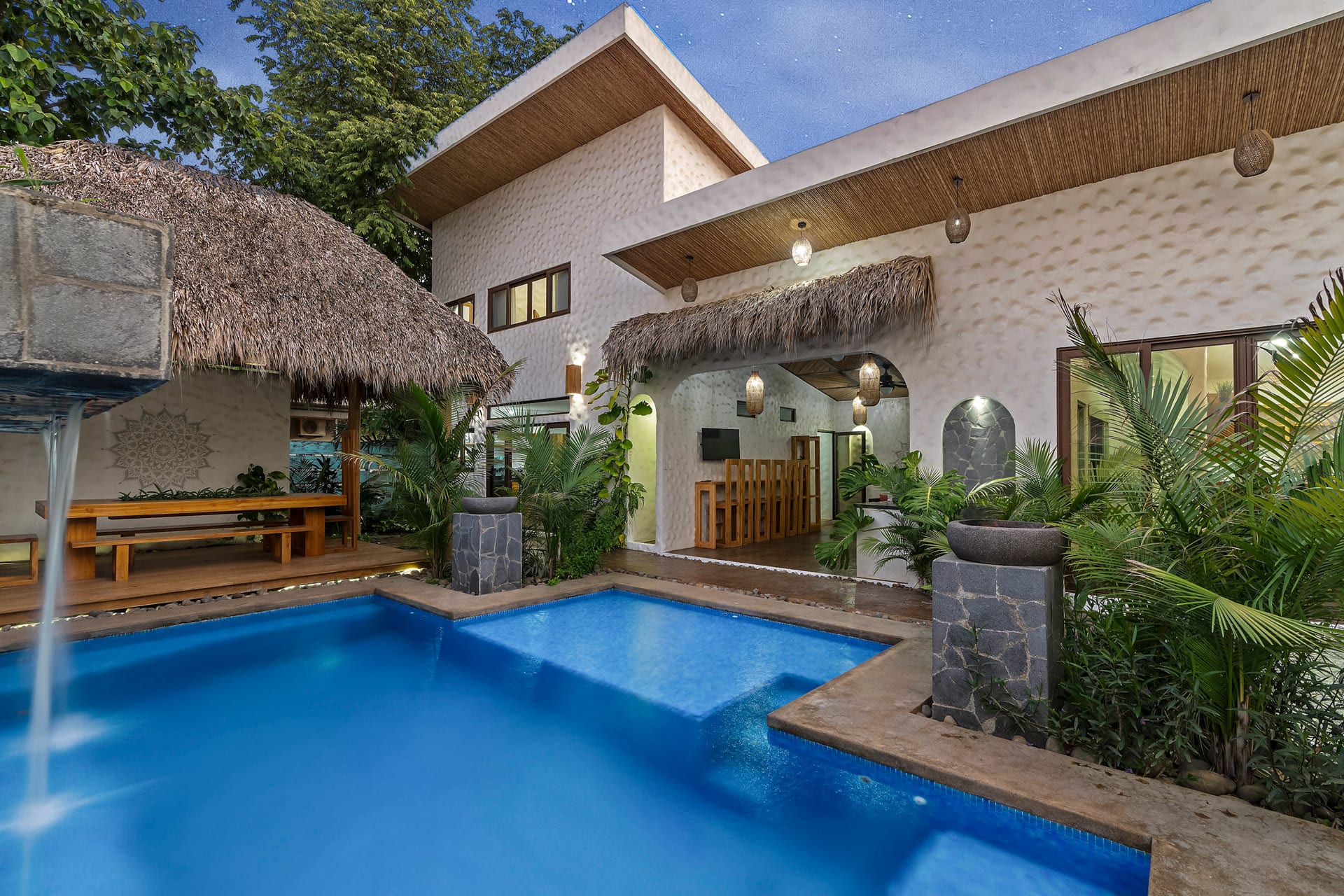 Casa Estrella is a stunning modern home in Surfside, a charming coastal neighborhood located on the outskirts of Potrero between Las Catalinas and Playa Flamingo. This home features four beautiful bedrooms, a guest house, a resort-style backyard, and a chic bohemian look with textured white walls and unique “zen” design features that create a laid-back vibe for a relaxing vacation in Costa Rica.