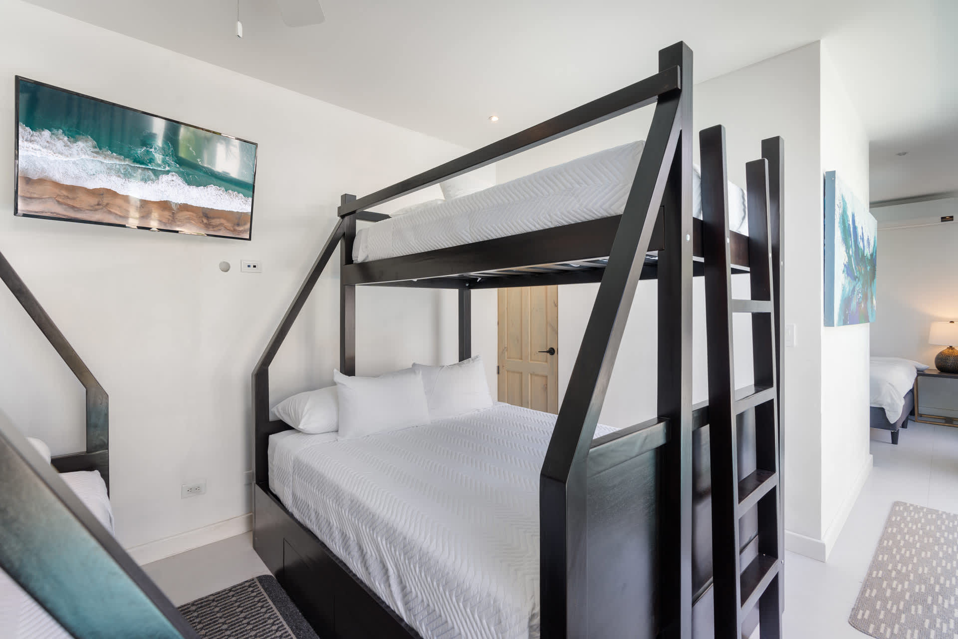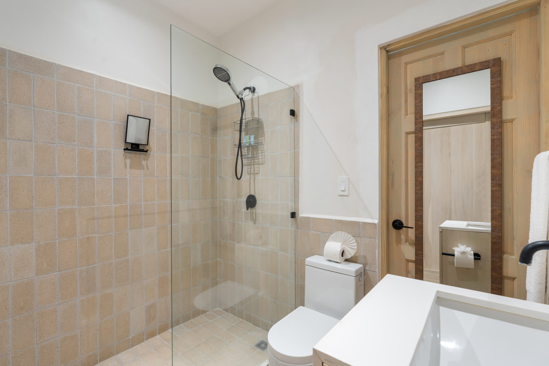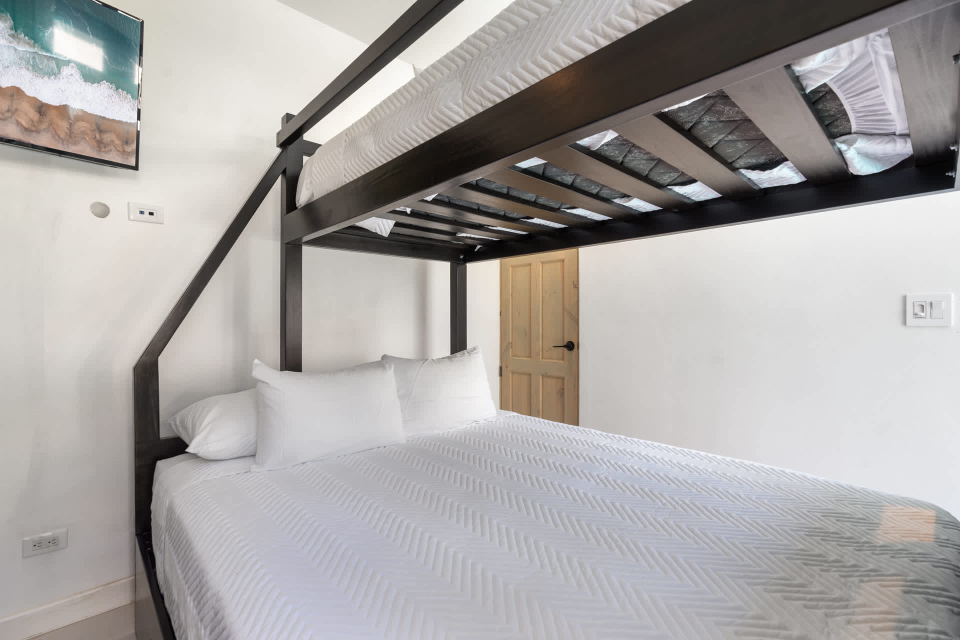 Casa Rio includes five beautifully furnished bedrooms: with two plush king-sized beds and two queen beds in the main house, perfect for larger groups, families, or multiple couples. Each bedroom has air conditioning and its own TV. The home has three full bathrooms with walk-in showers, one with a soaking tub, and a convenient half-bath by the pool. There is also an apartment that includes a king-sized bed, a queen-sized bed, and twin bunk beds. There are no doors between the king-sized bed and the bunk bedroom. With five TVs total and strong Wi-Fi throughout, there’s plenty of space to unwind.